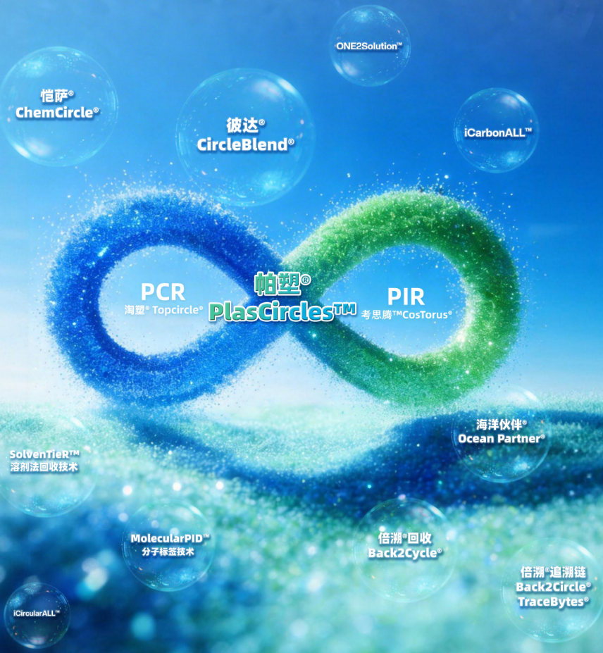 In response to the growing demand in the consumer market for full-range recycled plastics (PlasCircles™), PCR/PIR, same-grade recycling, green and low-carbon solutions, PlasCircles™ by PlasPac® = PCR [Topcircle®] + PIR [CosTorus®] offers an innovative solution for full-range and full-scenario applications of recycled plastics. These high-performance recycled materials not only match the physical properties of virgin materials, but also achieve significant carbon reduction. They deeply cover fields such as beauty packaging, fashion luggage, smart appliances, and new energy, providing customers with products and services that are traceable, with full lifecycle management, comprehensive visibility, high performance, and high stability, along with a digital product passport (iCarbonID, DPP).