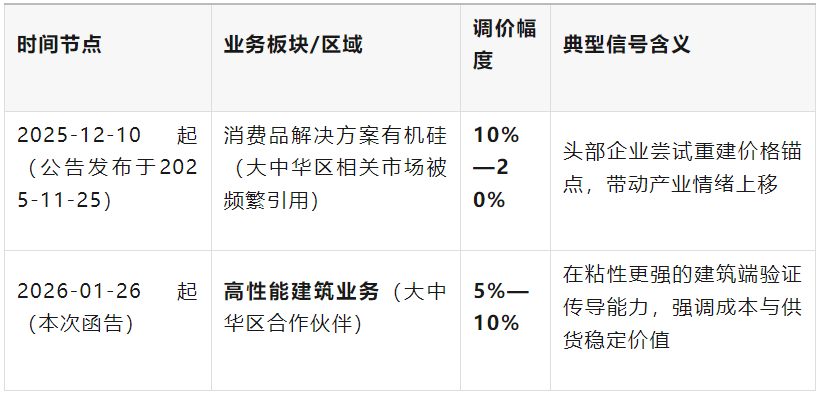 In early January 2026, Dow's silicone business issued a price adjustment notice to partners in the Greater China region, planning to implement a 5%–10% price increase on products related to its high-performance construction business starting January 26, 2026. The increase varies among different product lines and market segments. At first glance, this seems like a "routine" price increase letter: a few polite phrases, some cost explanations, and a sentence stating "to be executed if the contract allows." However, when placed within the context of the volatility of the silicone industry chain over the past year, it appears more like a signal flare: silicone is quietly shifting from an era of "competing on cost and scale" to an era of "competing on structure and discourse power."