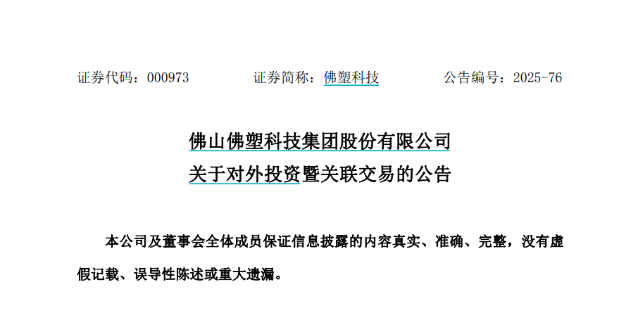 Foshan Plastics Group's investment proportion may not be large this time, but the strategic intent behind it is clear.