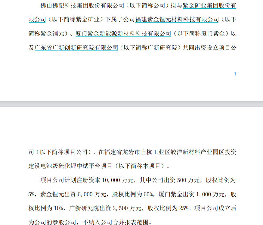 A well-established listed company with a registered capital of nearly 1 billion yuan has invested 5 million yuan in a new project, which may not seem noteworthy at first. However, when this project involves core materials for next-generation power batteries, the partner is mining giant Zijin Mining, and the project is located in the Shanghang Industrial Zone of Longyan City, Fujian Province, this investment move becomes worth examining in detail.