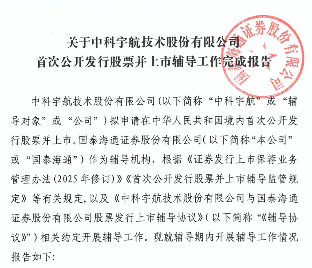 Recently, the China Securities Regulatory Commission's Public Offering Guidance System showed that CAS Space Co., Ltd. (referred to as CAS Space) has completed its guidance work.