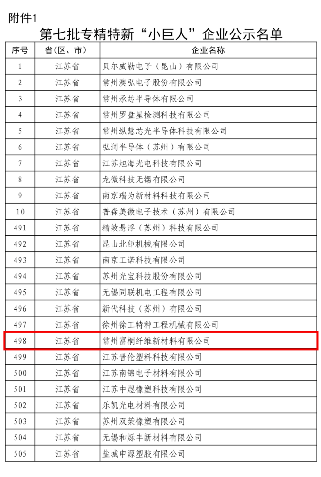 Recently, the Jiangsu Provincial Department of Industry and Information Technology publicly announced the list of the seventh batch of "Little Giant" enterprises that are specialized, refined, unique, and innovative in Jiangsu Province. Changzhou Futong Fiber New Materials Co., Ltd. has successfully made the list and joined the ranks of national-level "Little Giant" enterprises. The company has received this honor mainly due to its outstanding innovation capabilities in the field of liquid-colored fiber masterbatches and its significant contributions to industrial development.