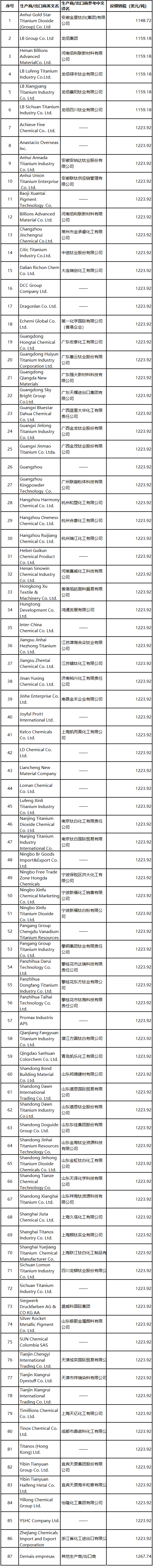 Recently, BrazilThe Foreign Trade Committee Executive Management Committee (GECEX) issued Resolution No. 802 of 2025.Rutile-type titanium dioxide originating from China.(Titanium dioxide pigments in Portuguese) made a final affirmative anti-dumping determination.Decide to impose a five-year anti-dumping duty on the products involved from China, with tax amounts ranging from $1,148.72 to $1,267.74 per ton.(Tax details are shown in the attached table.)