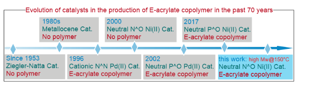 Figure 1. 70-year development history of ethylene-acrylate copolymer catalysts.