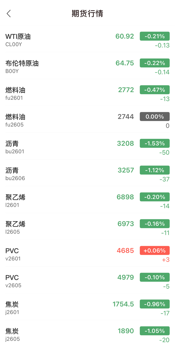 Saudi Arabia still has concerns about demand in the Asian market, coupled with the ongoing atmosphere of increased production within OPEC+, leading to a decline in international oil prices.Crude oil futuresThe December contract fell by $0.17 per barrel to $59.43, a month-on-month decrease of 0.29%. The ICE Brent futures January contract fell by $0.14 per barrel to $63.38, a month-on-month decrease of 0.22%. China's INE crude oil futures December 2025 contract fell by 1.6 to 460.5 yuan per barrel, with a night session drop of 6.1 to 454.4 yuan per barrel.