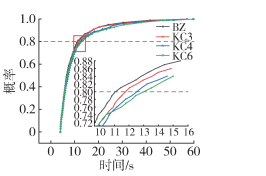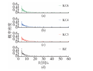 The commonly used residence time distribution (RTD) is employed to characterize the distribution and mixing ability of materials within the flow channel. RTD is closely related to the formation of extruded fluid quality. The residence time refers to the time taken from when PLA enters the extrusion chamber until it exits the die, which includes the cumulative residence time distribution function and the residence time distribution function. This paper uses the tracer particle trajectory tracking method to study the residence time and mixing ability of the extruder. A certain number of tracer particles (set to 2000 in this paper) are arranged at the flow channel entrance, and the Polyflow's Polystat statistical module is used to calculate and analyze the movement trajectory of tracer particles with the screw rotation in the flow channel. The cumulative residence time distribution curve is shown in Figure 9. There is a certain difference between the residence time curve of the slotted screw and the standard screw. A horizontal reference line is established at the ordinate of 0.8, indicating that the time for 80% of the particles to flow out of the KC6 flow channel is successively greater than KC4, KC3, and BZ. Thus, slotting the screw weakens the extrusion capability of the extruder, causing the material to have a longer residence time in the flow channel, allowing for more thorough longitudinal mixing. It can be seen that the cumulative residence time increases with the number of slots. Figure 10 shows the residence time distribution curve, where the particle residence time is mainly concentrated in the raised portion of the curve. The peak of the BZ curve is the highest, indicating that a larger number of particles have a shorter residence time, which also confirms that slotting leads to a longer extrusion time for the material.