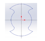 Based on the fundamental principles of twin-screw extruder geometry, the screw geometry model can be considered as a pair of meshing gears rolling over each other. The method for designing the end-face line is divided into relative motion method and envelope method. In this paper, the relative motion method is used. According to the data in Table 1, the end-face curve of the screw is drawn using equation-driven curves in Solidworks, as shown in Figure 1.
