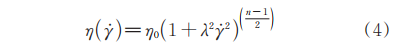 Select the Bird-Careau constitutive equation for numerical simulation to explore the relationship between shear rate and viscosity of polylactic acid.