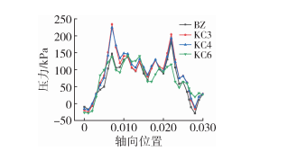The residence time increases with the number of slots, and KC6 is greater than the other three screw groups, exhibiting the best axial mixing performance.