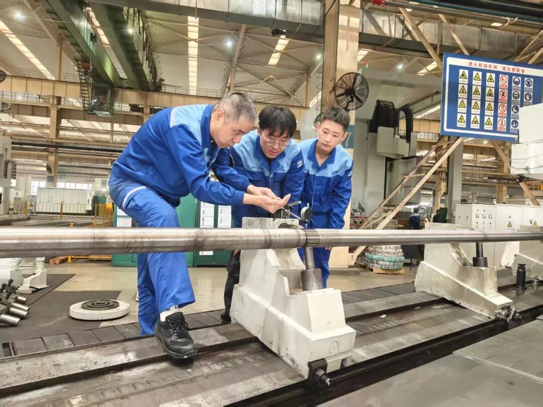The mandrel, apart from its own ultra-high aspect ratio, is greatly affected by factors such as incoming material bending, which significantly impacts processing. To address these challenges, Daxangsu formed a task force team with the "Skill Committee" as the backbone, focusing on the three key processes of turning, grinding, and gear hobbing. Leveraging the precision processing advantages of advanced equipment such as smart straightening machines, 15-meter CNC grinders, and 15-meter CNC gear hobbing machines, they systematically formulated and implemented 15 technical tackling measures. Among these, 7 measures each were centered around lathe and grinder processing, covering core aspects like support tooling optimization, bending control, intelligent compensation, and datum transfer. Additionally, there is one standard storage specification measure, comprehensively constructing a technical support system covering the entire processing chain. During the tackling process, the project team achieved systematic control over the processing procedure through self-made auxiliary tooling, program compensation, optimization of tool and abrasive selection, and refined control of cutting parameters. This effectively resolved core processing difficulties such as large deflection, poor rigidity, and easy bending of the mandrel. Strictly adhering to the production concept of "preceding processes serving succeeding ones," the processes were efficiently interconnected, ultimately overcoming multiple technical bottlenecks in mandrel processing. The overall processing efficiency of the mandrel was improved by over 40%, achieving dual enhancements in processing efficiency and quality, and successfully realizing full-line connectivity in mandrel processing, laying a solid foundation for the smooth progression of the project.
