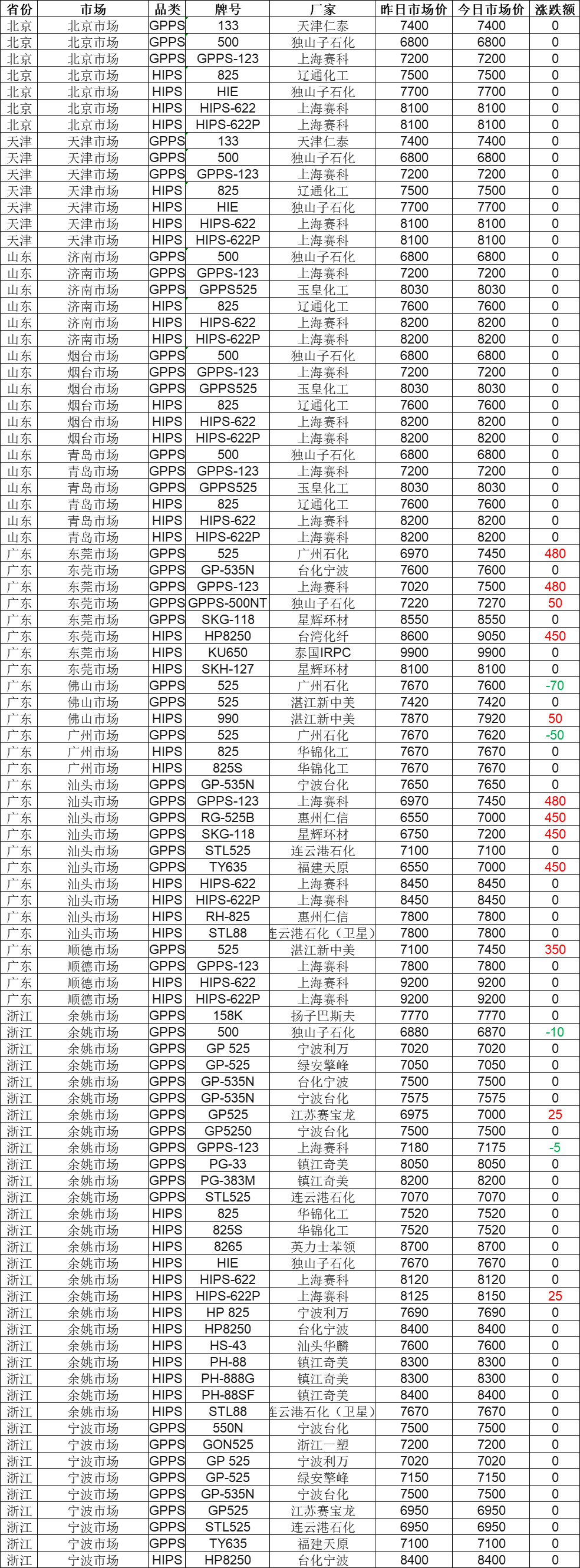 December 9 PS Market Steady With Increase! Highest Rise of 480 Yuan!