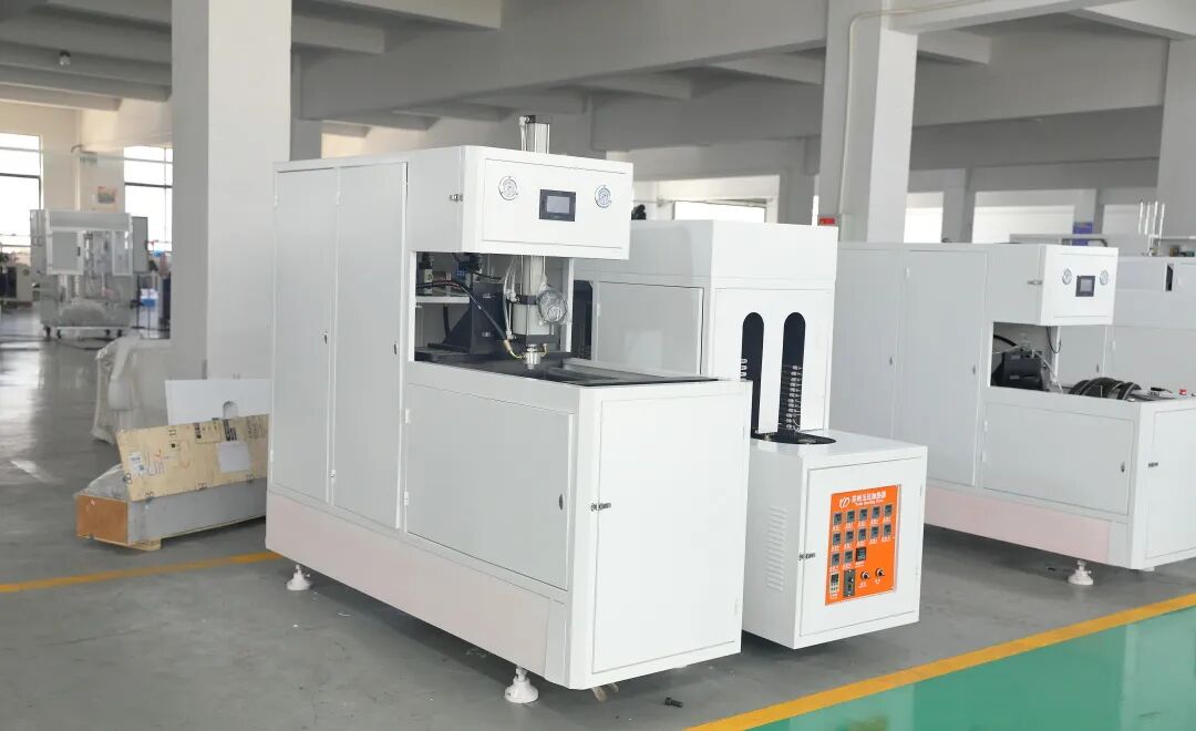 This bottle blowing machine features a dual-cavity design, a maximum bottle volume of 1500ml, a production capacity ranging from 1000 to 1500 bottles per hour, and a compact footprint of only 5 square meters, with the main unit occupying just 2 square meters, resulting in high space utilization.