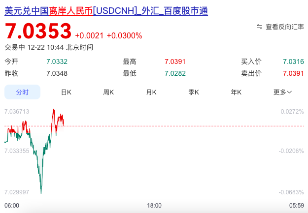 Recently, the RMB reached a 14-month high. On December 22, the offshore RMB exchange rate fell to a low of 7.0282, while the onshore RMB exchange rate dropped to a low of 7.0408.