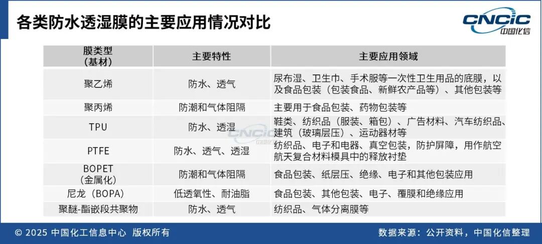The main downstream application areas for waterproof breathable membranes are packaging, medical hygiene, textiles, etc. Among them, the membrane types with the largest usage in outdoor fabrics/clothing applications are PTFE membranes and TPU membranes. Due to the difficulty of production and processing and high cost, PTFE membranes are generally used only in specialized jackets, ski suits, mountaineering suits, military uniforms, firefighting suits, and other applications that require high standards or are used under harsh conditions. While TPU membranes have slightly poorer breathability, they are cheaper and offer higher cost performance, primarily used for ordinary protective clothing and everyday jackets.