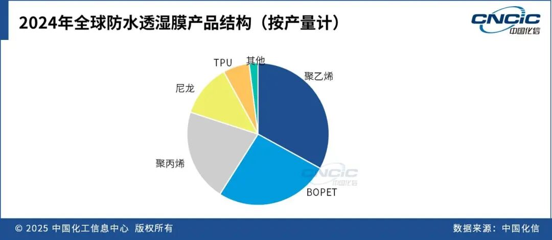 In 2024, the global consumption of waterproof breathable membranes in the outdoor fabric/apparel application field is approximately 110,000 tons, with a market size of about 670 million USD. In terms of consumption volume, TPU membranes are the largest, followed by PTFE membranes; in terms of consumption value, PTFE membranes are the largest, followed by TPU membranes.