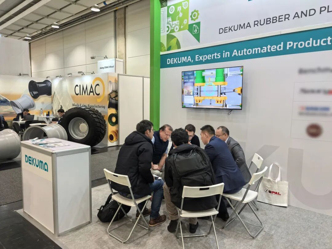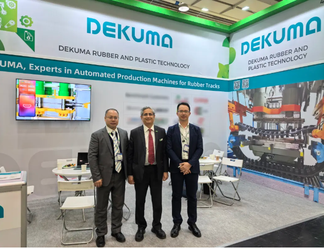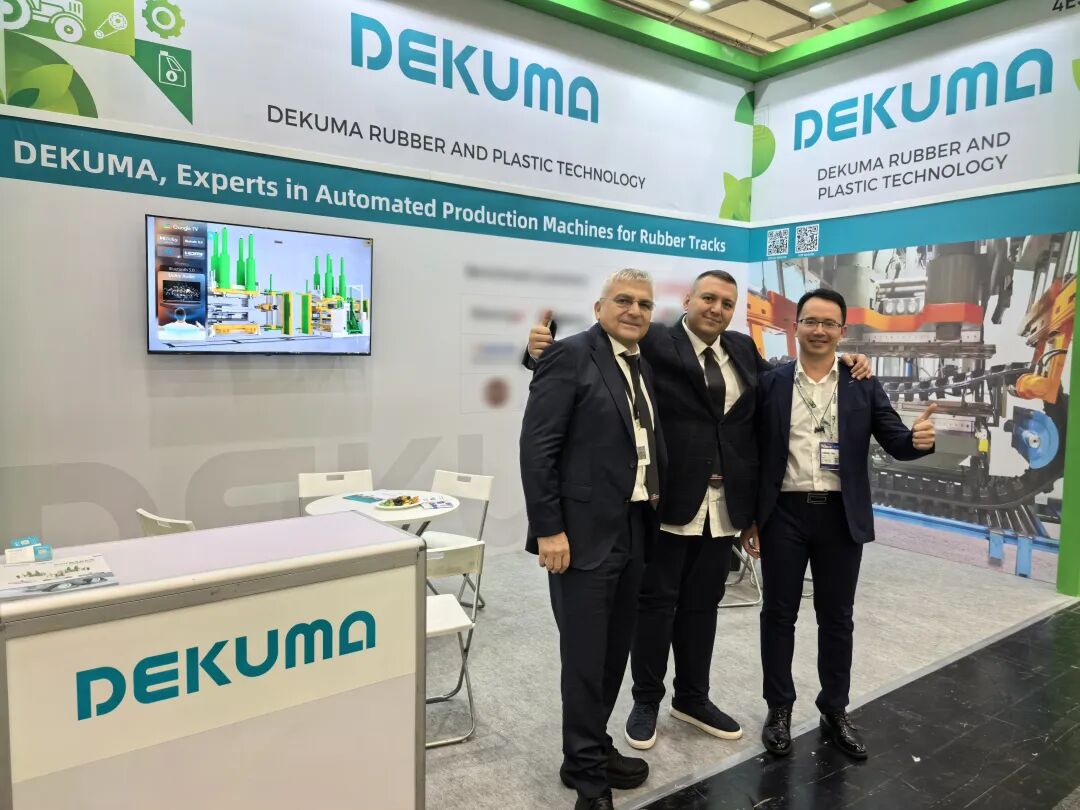 During the exhibition, the DEKUMA booth attracted many agricultural machinery manufacturers' representatives from Europe, the Middle East, and other regions to stop by and engage in in-depth discussions, thanks to its innovative rubber track production solutions.
