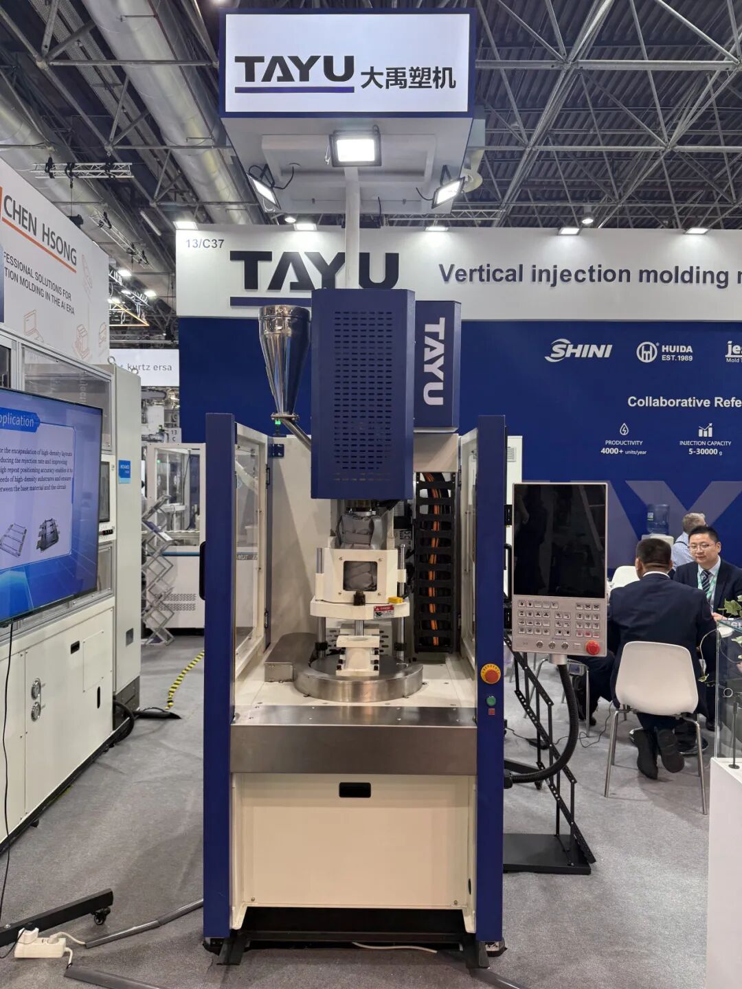 TAYU (Dayu Machinery) has created a highly technological display space at Booth C37 in Hall 13, featuring multiple star equipment demonstrating dynamic performances. Buyers from various countries are continuously arriving at the booth, and the atmosphere for on-site negotiations is vibrant.