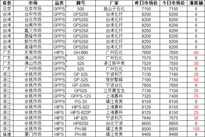 According to statistics from Zhuansu Shijie on January 8, as of 11 a.m., the overall plastic market has shown a steady upward trend this morning, with ABS rising by a maximum of 30 yuan and PS market increasing by a maximum of 150 yuan. Most of the PVC market is in the green, with a general increase of 20-150 yuan, the highest rise being 150 yuan; The PA market is stable with some increases, the highest rise being 200 yuan.