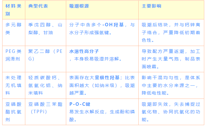 3. Control the addition amount:Minimize the use of highly hygroscopic materials while meeting performance requirements.