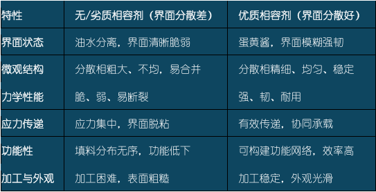 The realization of "interfacial dispersion" by compatibilizers is not just important but crucial; it is the core and soul of the entire compatibilizer technology.