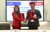 Zhou Qin (left), Senior Director of BASF Intermediates Business Unit China, and Zhang Weijun (right), Chairman of Warrior Sports, sign the authorization agreement. With the hosting of marathon and other events at the National Games, a nationwid