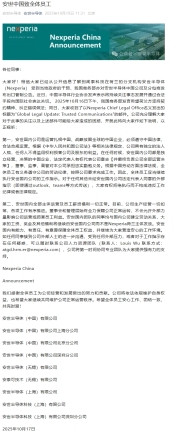 In late September 2025, the Dutch government implemented asset freezing and governance intervention measures against Nexperia, a semiconductor company with Chinese investment, citing national security concerns, which triggered a chain reaction. In re