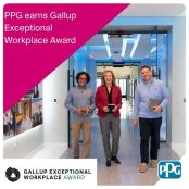 PPG has been awarded the Gallup Exceptional Workplace Award (GEWA) for the third consecutive year. This annual award recognizes high-performing companies that put their employees at the center of their business strategies. Gallup has found that PPG c