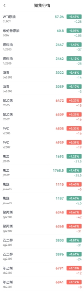 I. Overnight Crude Oil Market Dynamics The instability of the situation in Iran has not been completely eliminated, potential supply risks persist, and international oil prices are rising. NYMEXCrude oil futuresFebruary contract at 61.15, up by $1.65