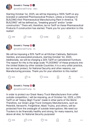 Trump Wields Tariff Stick Again, Affecting Heavy Trucks, Furniture, and Pharmaceuticals, with a Maximum of 100%