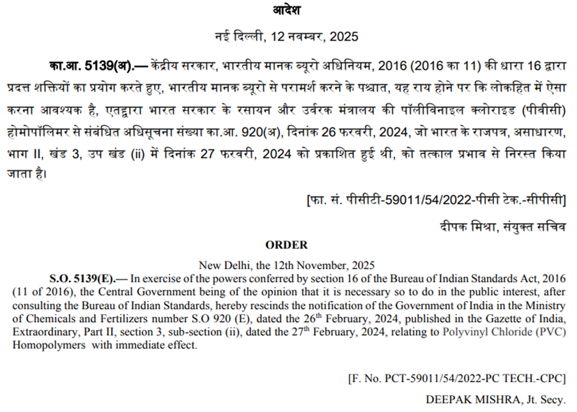 India BIS Certification Cancellation: Short-Term Dividend and Long-Term Layout of China PVC Market