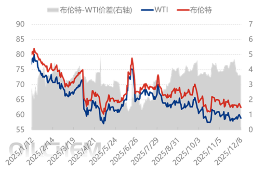 2024-2025 International Crude Oil Price and Spread Chart (USD/barrel, right axis: USD/barrel)