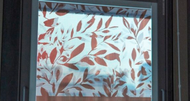 The transparency and patterns of the thin-film perovskite materials can be customized in four prototypes, one of which features decorative patterns, while the other prototypes have surface treatments that range from translucent to nearly transparent.