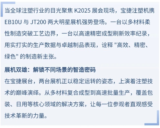 K2025 On-Site Coverage | Baijie Dual Machines Unleash Hard-Core Power: Defining New Standards for Injection Molding with Speed and Precision