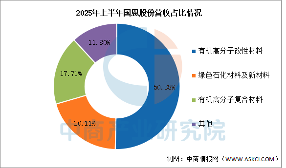 In the first half of 2025, the company achieved operating revenue of 9.754 billion yuan, a year-on-year increase of 4.58%; the net profit attributable to the parent company was 346 million yuan, a year-on-year increase of 25.82%. The main products in the first half of 2025 included organic polymer modified materials, green petrochemical materials and new materials, and organic polymer composites, accounting for 50.38%, 20.11%, and 17.71% of the total revenue, respectively.