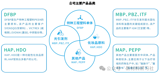 As a company focused on the research and development, production, and sales of aromatic ketone products, New Hanhua New Materials' main business covers core raw materials for specialty engineering plastics, photoinitiators and cosmetic raw materials, as well as pharmaceutical and pesticide intermediates. The product matrix is rich and clearly positioned.