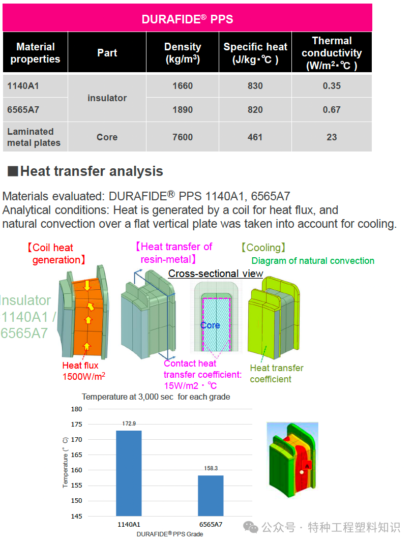 Fourth, high thermal conductivity DURAFIDE PPS 6565A7 is used for motors, with a thermal conductivity of 0.67 W/m·K.