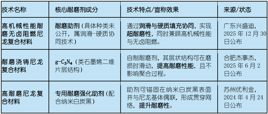Table: Widely Used and Technically Mature Abrasion-Resistant Additive Types