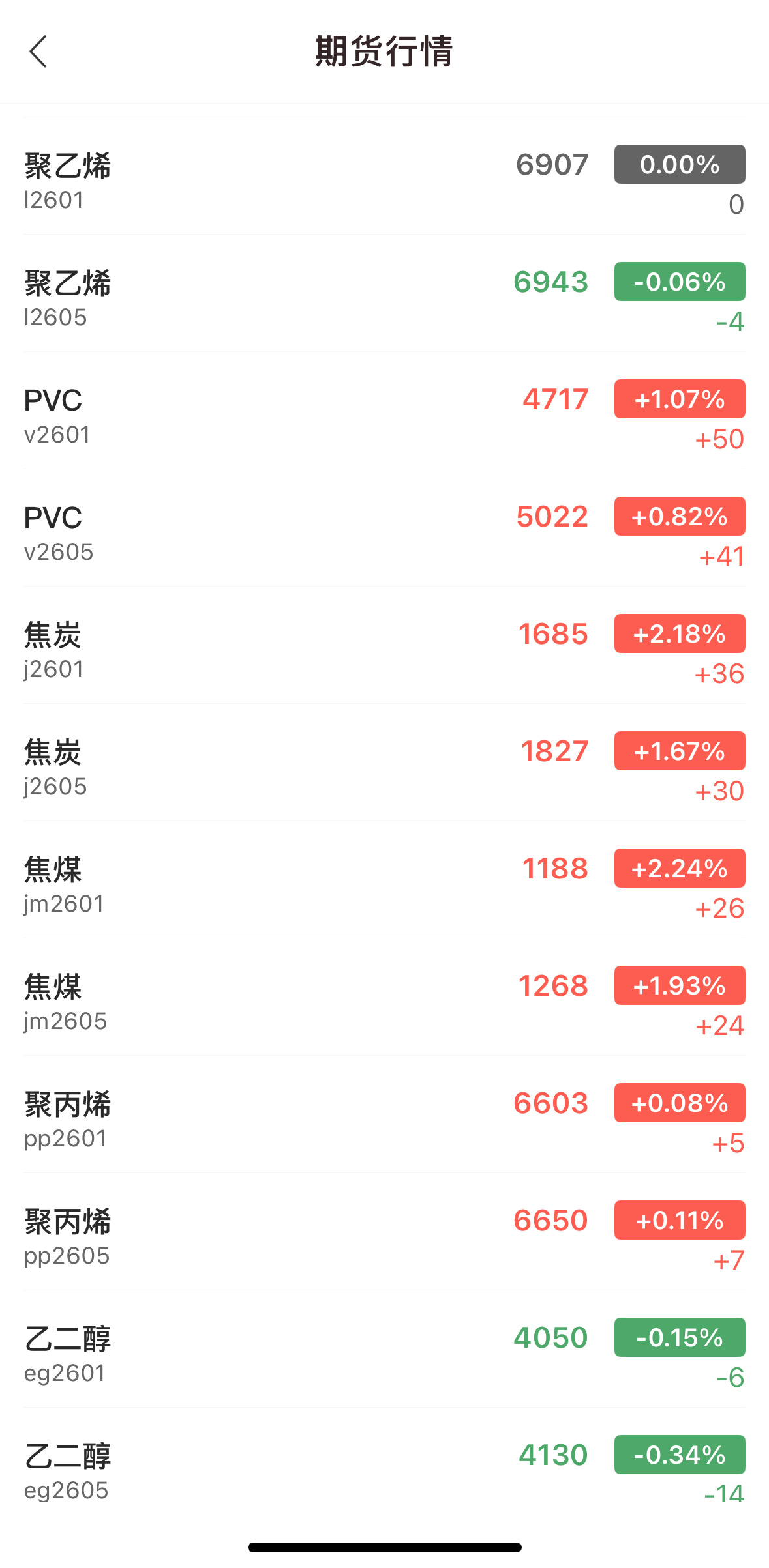 The PP2601 contract reported 6603 yuan/ton, up 0.08% from the previous trading day.