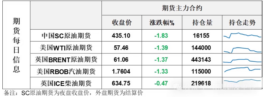 American BusinessCrude oil inventoryContinuous growth for three consecutive weeks, coupled with the prospect of renewed talks between Russia and Ukraine, has led to a decline in international oil prices.Crude oil futuresFor the November contract, it was $57.46 per barrel, down by $0.81, a decrease of 1.39% from the previous period; ICE Brent crude futures for the December contract were $61.06 per barrel, down by $0.85, a decrease of 1.37% from the previous period. China's INE crude oil futures for the 2512 contract rose by 0.7 to 445.6 yuan per barrel, but fell by 8.5 to 437.1 yuan per barrel in the night session.