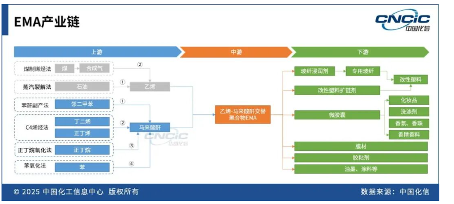 In terms of downstream applications, due to the high maleic anhydride content and inherent solubility of EMA, it is currently widely used in various fields such as fiberglass sizing agents, plastic modification chain extenders, microcapsules, membrane materials, and adhesives.