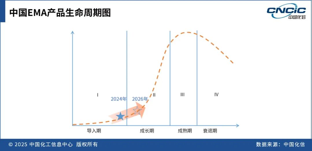 Currently, the global EMA market is dominated by Venator, with tight product supply. Due to limited production capacity, the downstream market has not been effectively developed.As a high-performance green environmental protection additive, EMA products are currently mainly used in the field of fiberglass wetting agents, with a large and rapidly growing demand. In the future, there is also significant market potential in areas such as microencapsulation, membrane materials, and chain-extending agents for modified plastics.The domestic EMA products are still in the introductory phase, highly reliant on imports, posing a supply interruption risk. For China, it is considered a "choke point" product, and it is necessary to achieve import substitution as soon as possible.