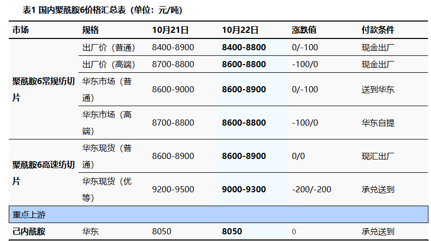 ①、 Last week's weekly settlement price of Sinopec's caprolactam was 8,710 yuan/ton (six-month acceptance without interest). The previous weekly settlement price was 8,580 yuan/ton, including a September monthly settlement review of 180 yuan.