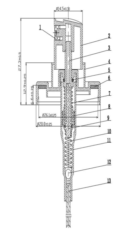 Gasket/Seal Ring: Located between the pump body and the bottle neck to ensure a tight seal, preventing leakage and evaporation. The material is mostly EPDM or FKM (fluororubber), requiring high resilience and low permanent compression set.