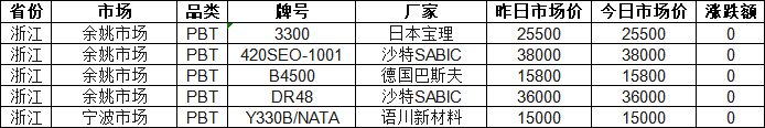 Today, the PBT market quotation range for the entire market is 15,000-38,000 yuan, with a market median of 25,500 yuan.