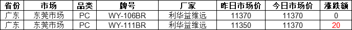 According to statistics from Zhuangsu Shijie as of 11:00 AM on October 23, the PC market across the country is stable with a slight increase! 50% of the market prices remain stable, with the highest increase being 20 yuan. Currently, the price of Lihua Yi Weiyuan WY-111BR in the Dongguan market is 11,370 yuan. Today's overall market price range for PC is 11,370-11,370 yuan, with the market median being 11,370 yuan.
