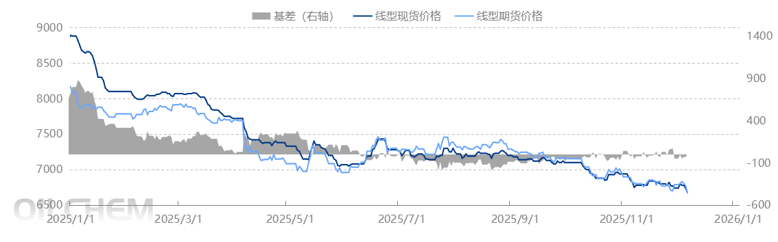 The LL main contract fluctuated downward, opening at 6689 yuan/ton and closing at 6643 yuan/ton by 15:00, a decrease of 68 yuan/ton compared to the previous settlement price. The trading volume was 234,900 lots, and the open interest was 374,200 lots. Today's spot-futures basis was 7 yuan/ton, an increase of 1 yuan/ton compared to the previous working day.