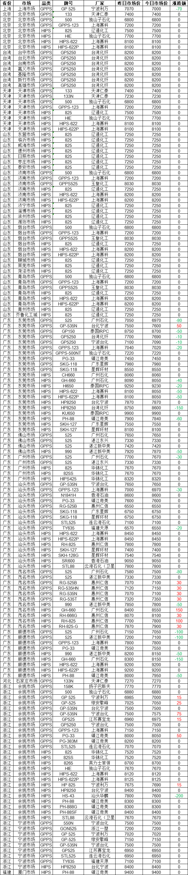 As of 4:00 PM on December 8, the PS market across the country remains stable with slight decreases. 75% of market quotations are stable, with a maximum drop of 200 yuan. The current quotation for Shantou Hualin HS-43 in the Yuyao market is 7,600 yuan. Today's PS market quotation range is 6,550-9,900 yuan, with a median of 7,550 yuan.