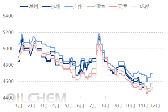 The domestic PVC spot market is fluctuating and declining, with a weak supply and demand situation. Supply remains high, domestic trade demand shows no highlights, and price competition in the export market continues. Macroeconomic expectations are performing poorly in the short term, and transaction prices are fluctuating and seeking lower levels during trading. In the East China region, the carbide method Type 5 spot cash pickup is at 4360-4500 yuan/ton, and the ethylene method is at 4400-4600 yuan/ton.