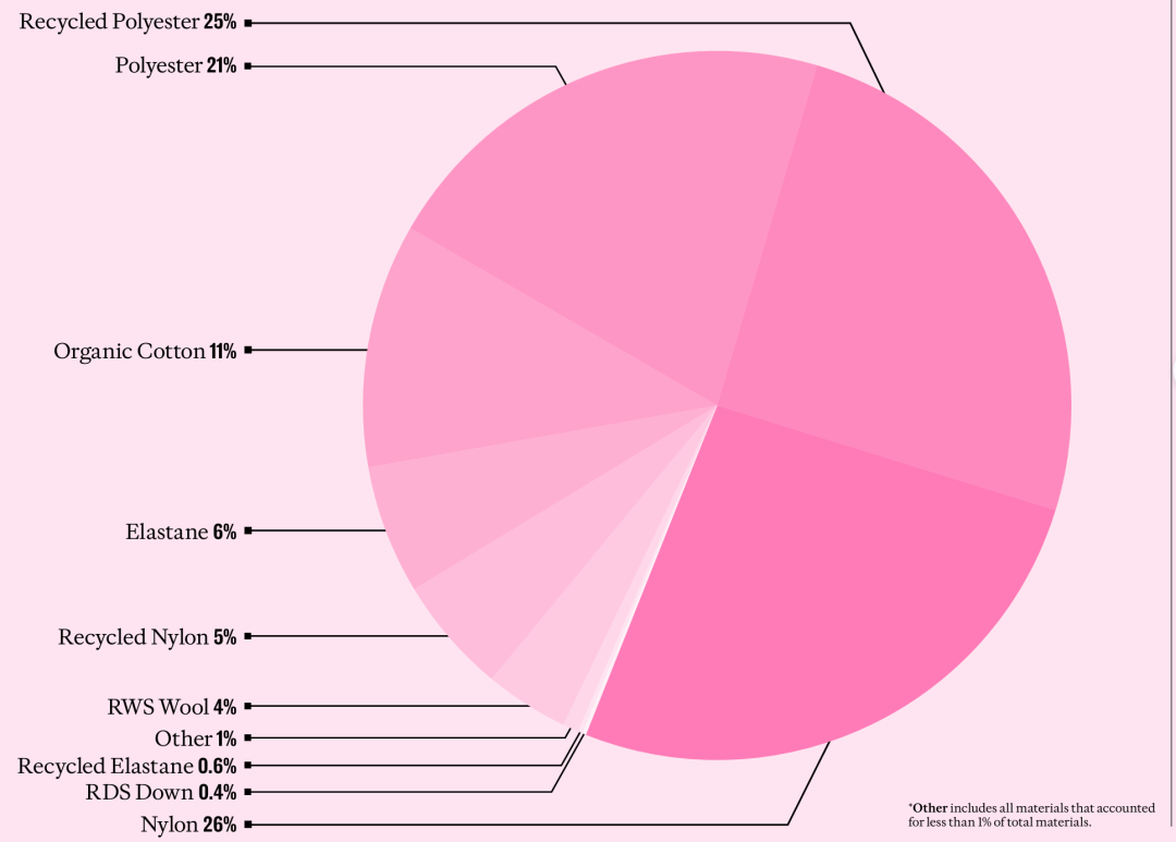 British cycling lifestyle brand Rapha recently released its 2025 impact report, highlighting the increase in the amount of recycled polyester used in the brand's clothing. In 2024, for the first time in history, the use of recycled polyester fibers will surpass that of virgin polyester fibers. Furthermore, starting this year, Rapha aims to achieve 80% usage of recycled synthetic fibers by 2030, which according to the chart below, primarily involves polyester (46%) and nylon (31%).