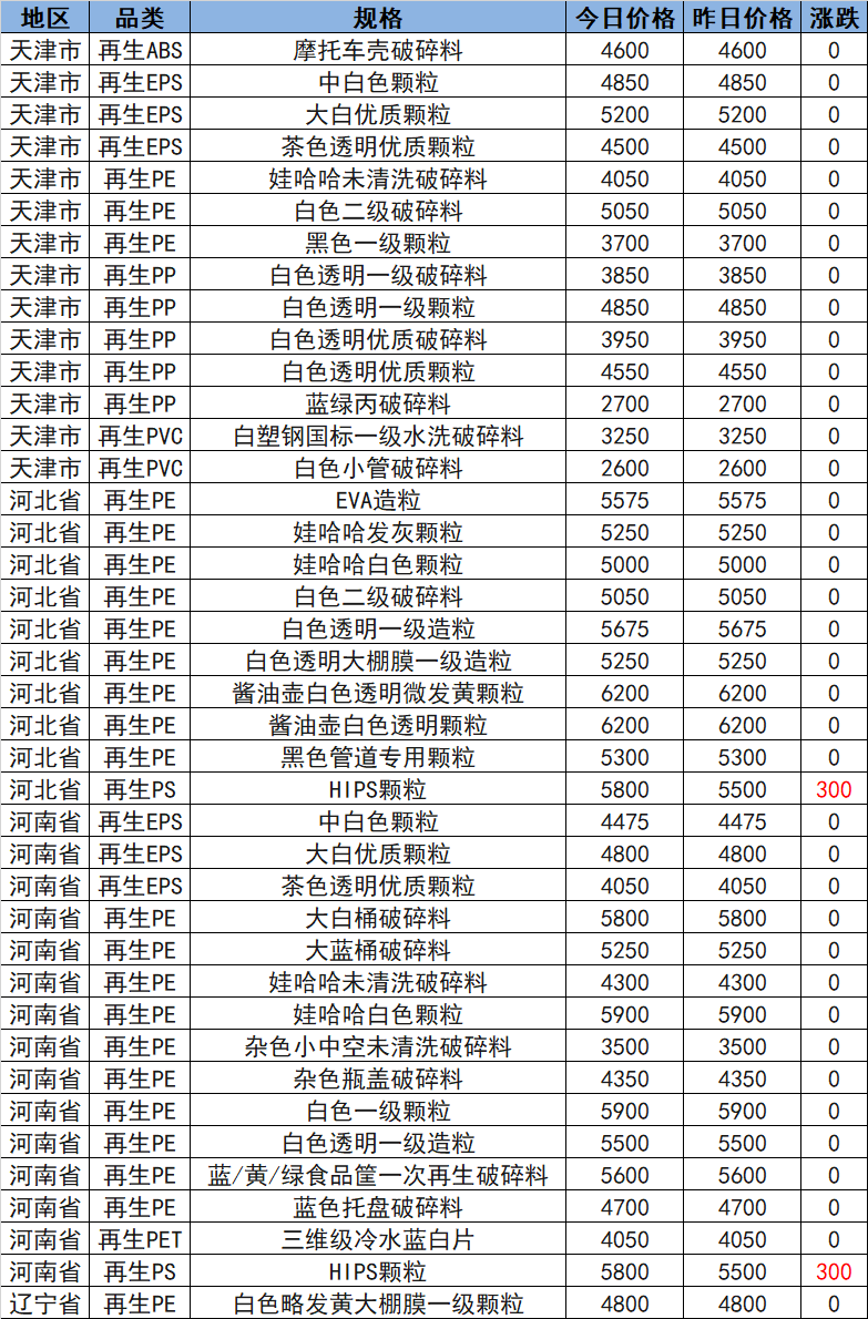 [Recycled Material Market Prices] North China Recycled Market Remains Stable with Growth, Recycled PS in Hebei and Henan Rises by 300